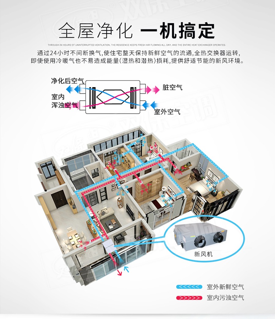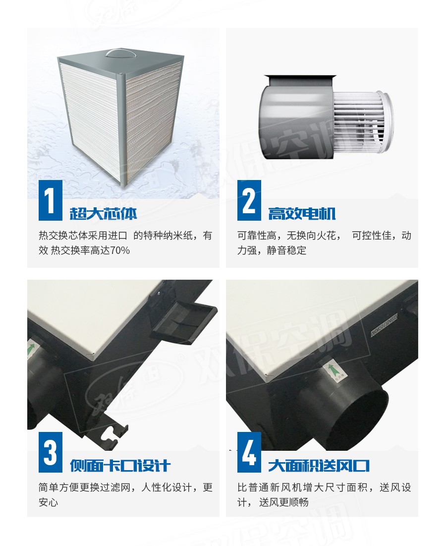 【產(chǎn)品特點】雙向換氣、靜音設(shè)計、能量回收、過濾凈化、低費用高效率等